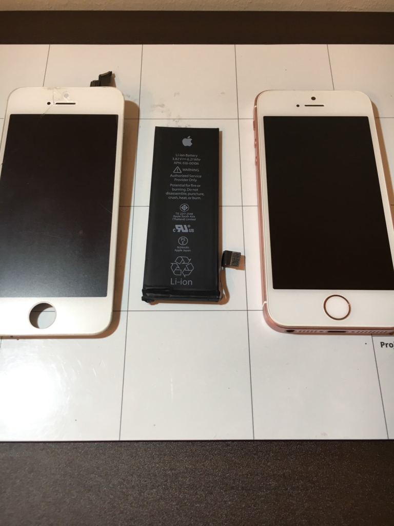 本日朝一で、飛び込みのお客様のiPhoneSEのガラス割れ修理&バッテリー交換を行いました!